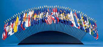 Each flag is printed on a silk-like material. All sizes are carefully hem-stitched on all four sides. The 4" x 6" flags are supplied on a 3/16" x 10" plastic black staff with gold spear. The 8" x 12" flags are supplied on a 1/4" x 18" black wood staff with gold spear. (Base sold separately).