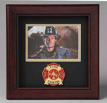 An Emergency Service die-cast, gold medallion is centered below a 4" x 6" horizontal photo opening. Double-matted solid mahogany colored wood frame combines to create this unique and quality gift. Desktop easel and wall mounting hardware included. Made in U.S.A. Outside dimensions: 10" x 10"
